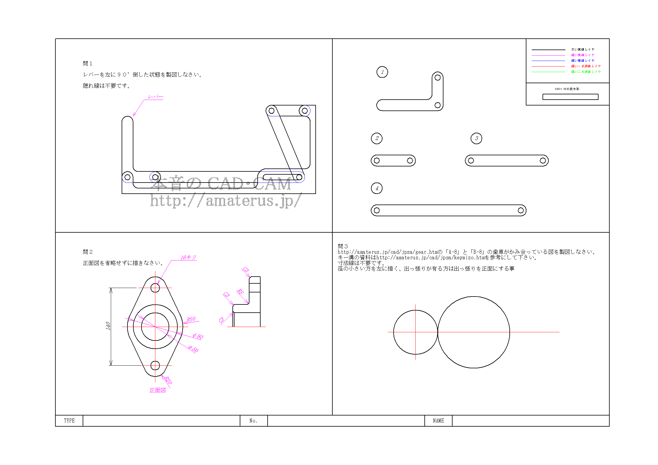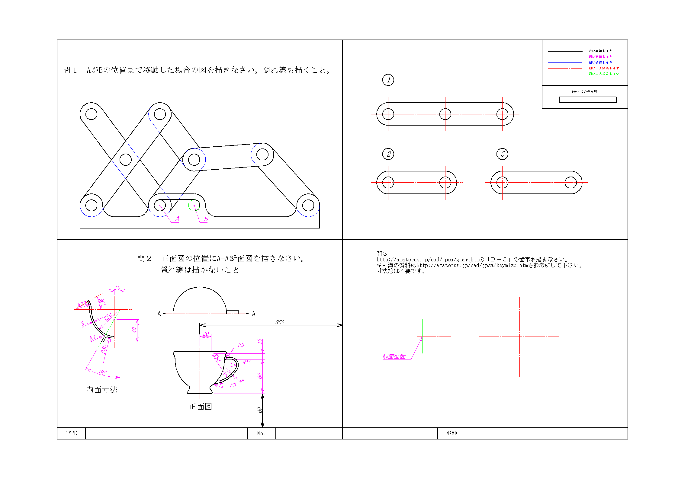 CAD利用技術者試験 一級 機械 実技 模擬試験CSAJの公開練習問題機械 図枠 kikai_sample_ver2000.dxf 機械の模範解答