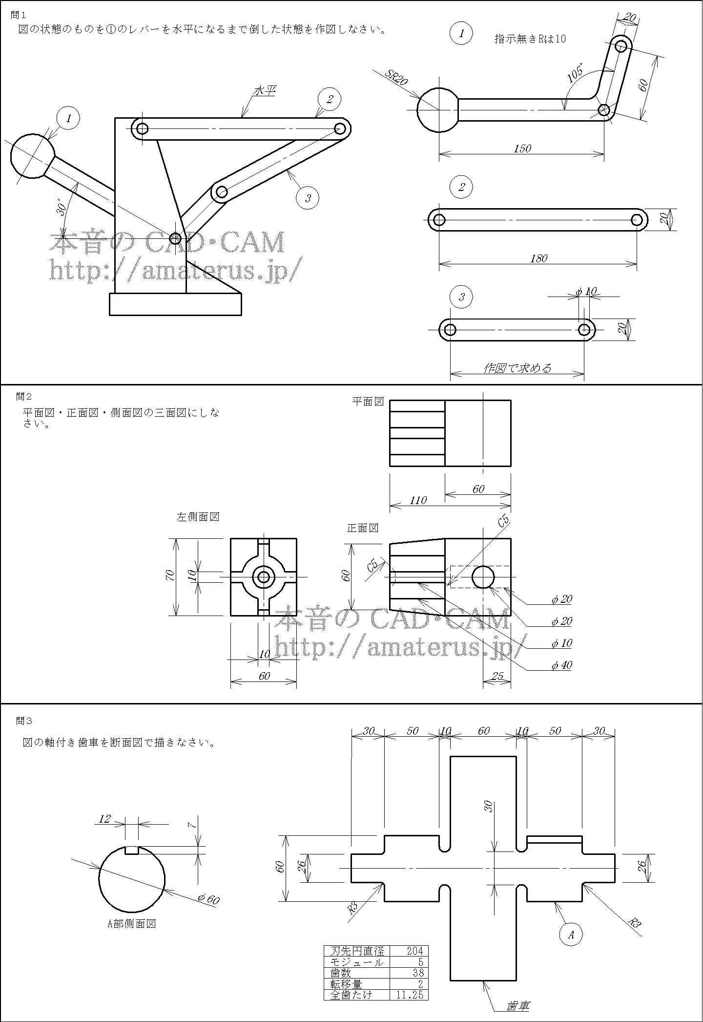 CAD利用技術者試験 一級 機械 実技 練習問題 3