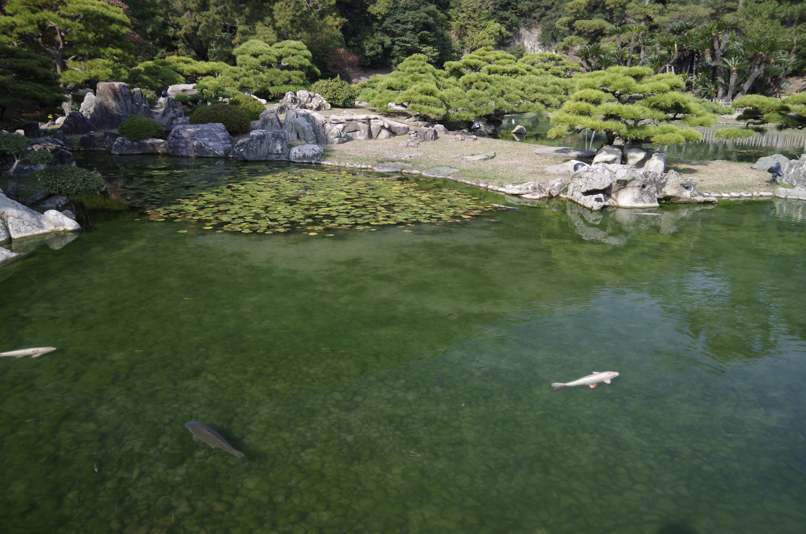 ただし、これは背景となる紫雲山を敷地に含めているためで、平野部だけなら後楽園よりも少し広い程度です。まあ、それでも日本一の広さですが。