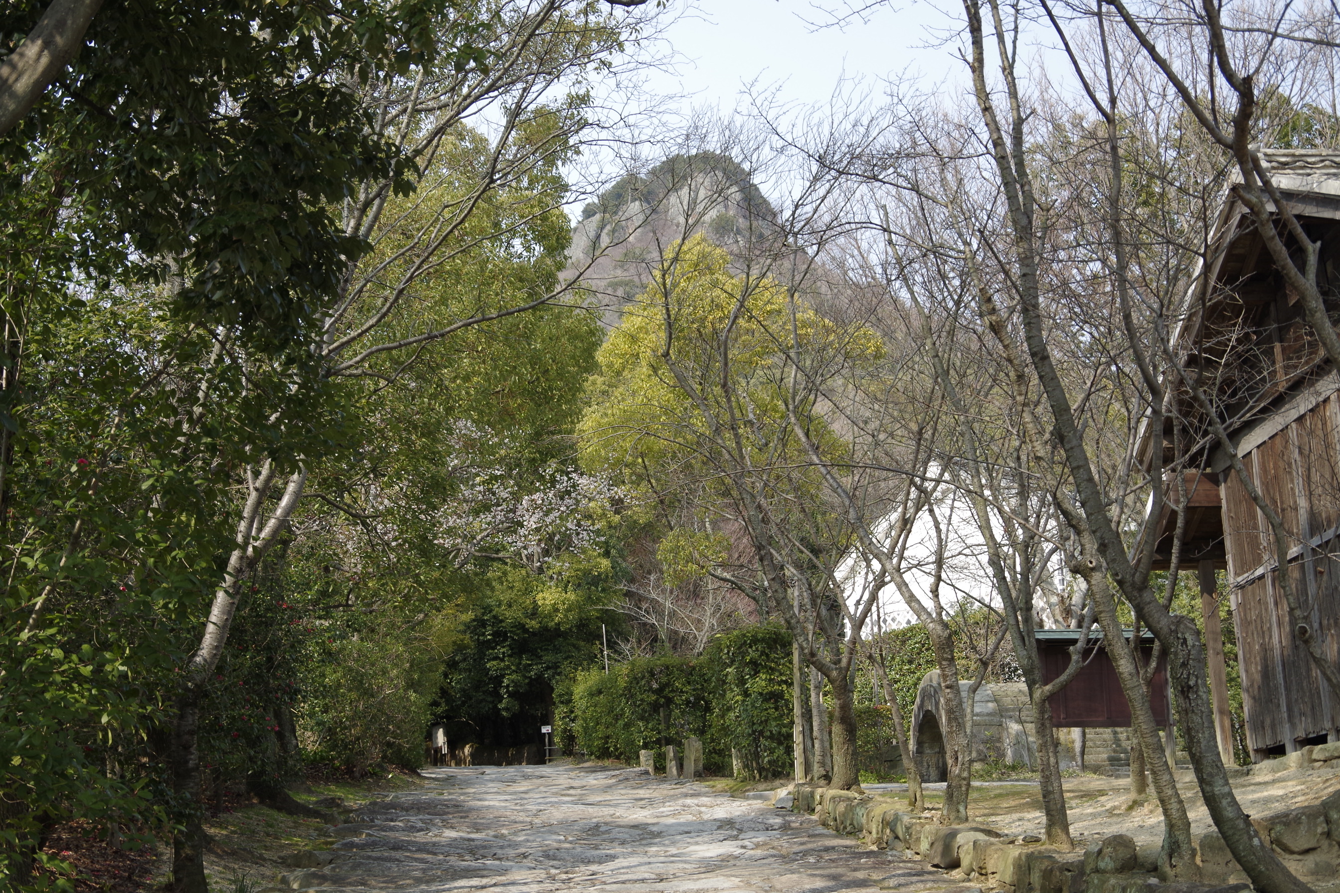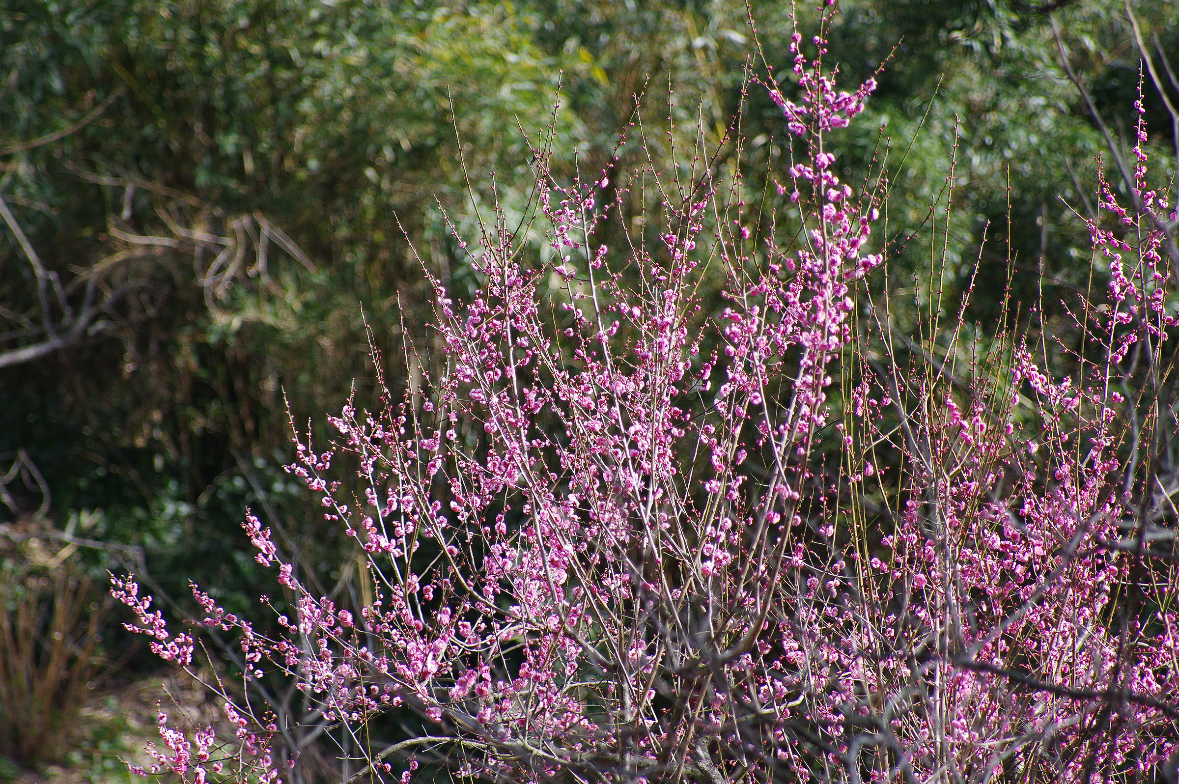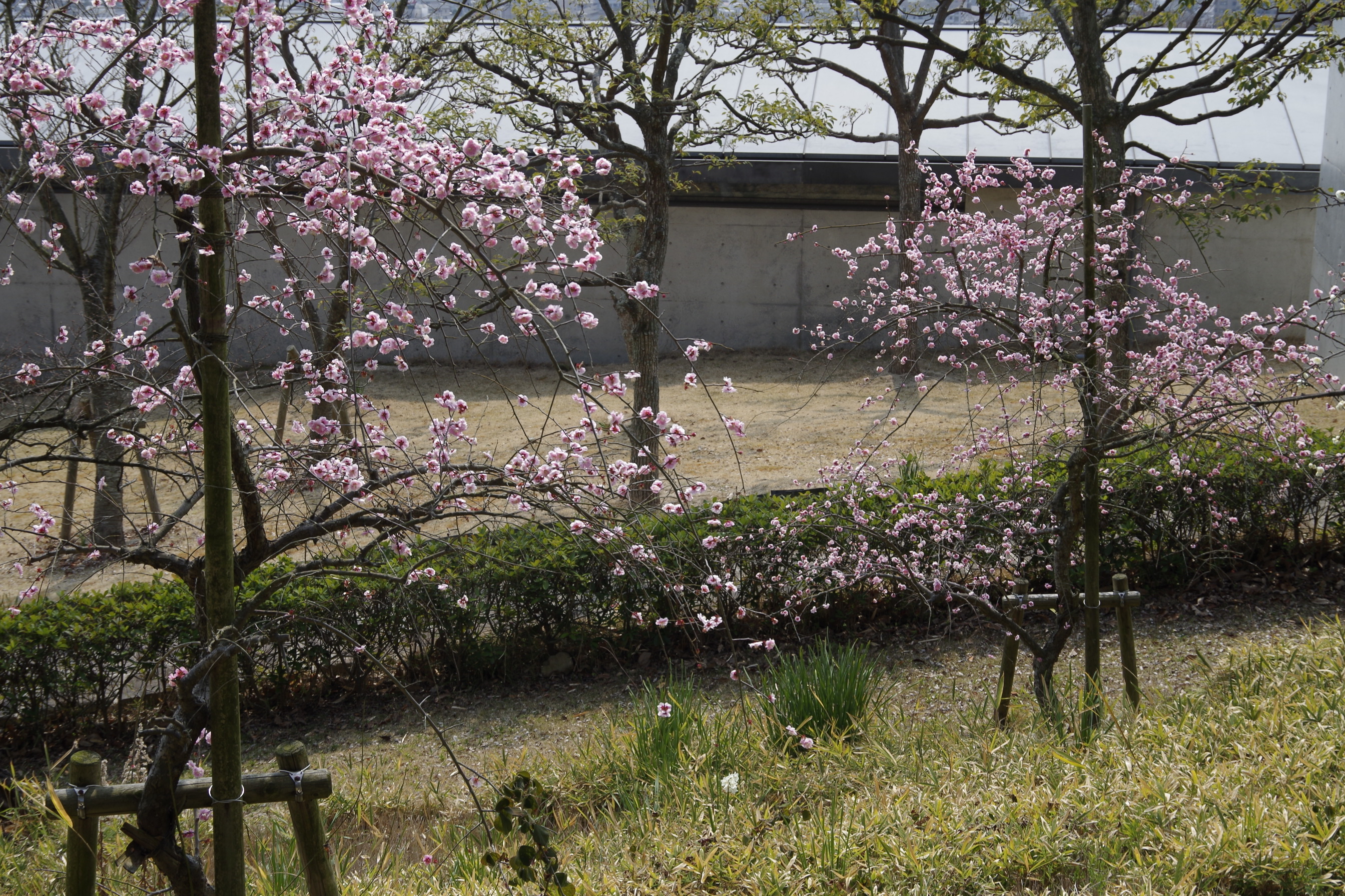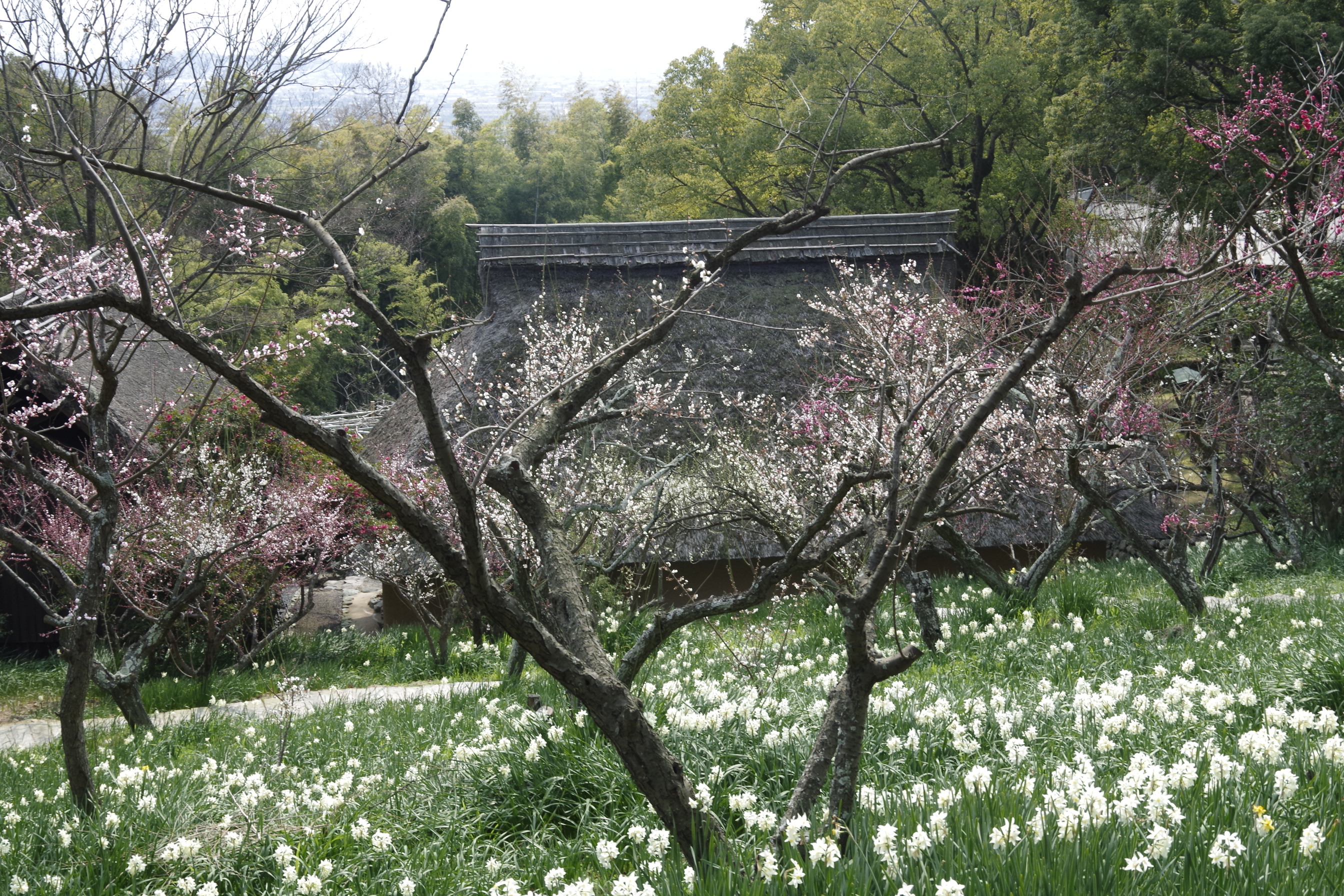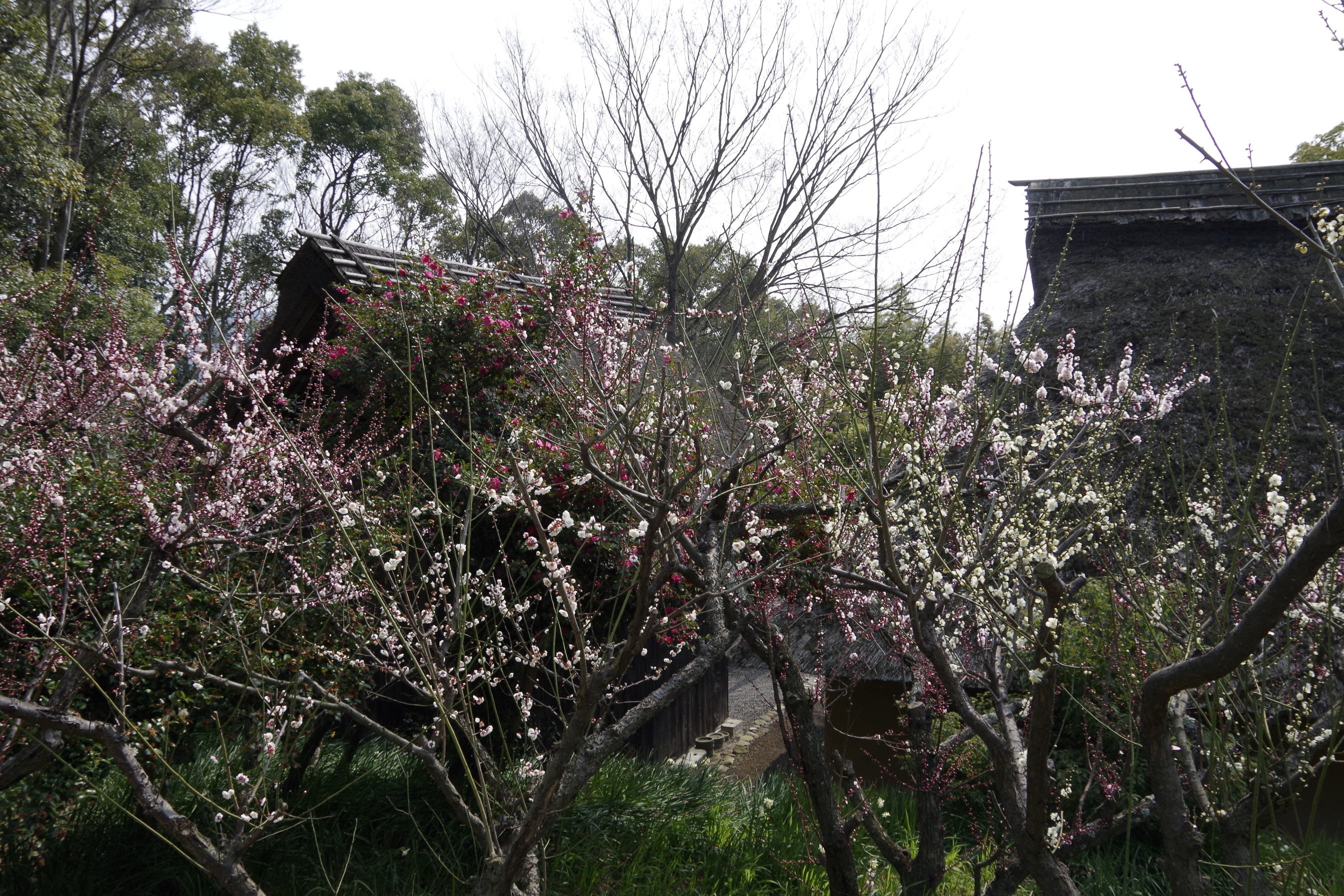 見頃は3月上旬。梅の花が咲き乱れ、椿も未だ残っている頃。