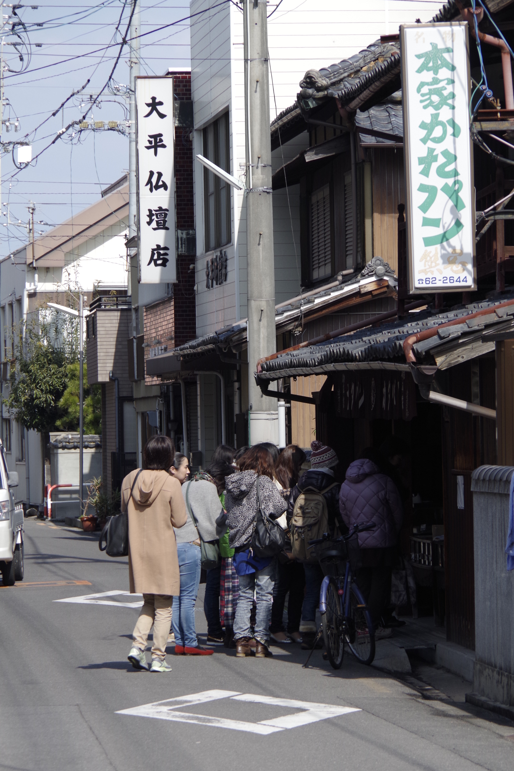 仁王門から出た所には地元で大人気の「かたぱん」の店が左手方向に、甘酒と「もろみ」で有名な山田屋が右手に見えます。